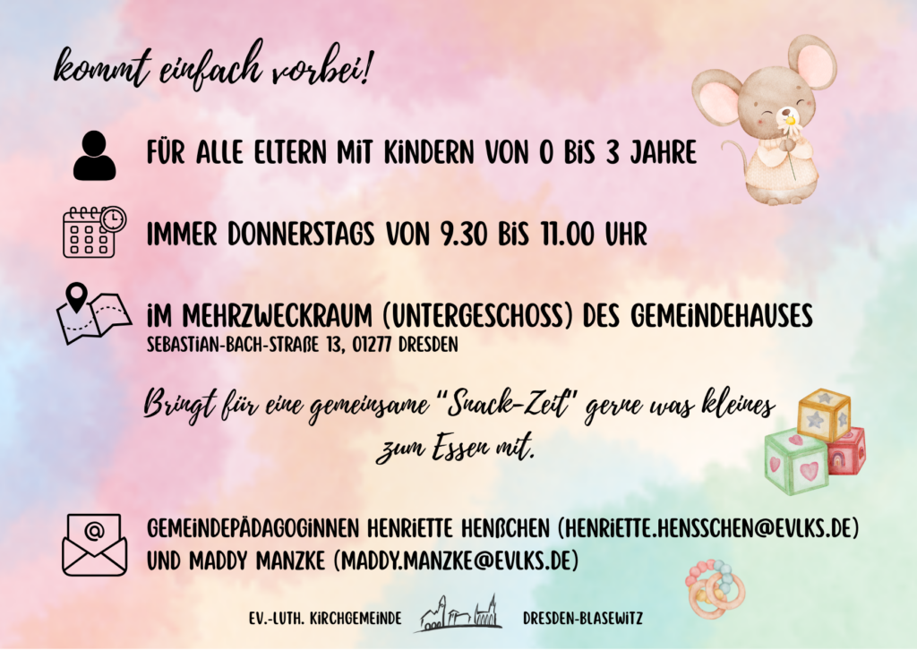 als Vertreter des Trägers begrüße ich Sie herzlich auf den Seiten des „Zwitschernests“ und der „Grünschnäbel“, der beiden Häuser des Kindergartens unserer Kirchgemeinde in Dresden-Blasewitz.